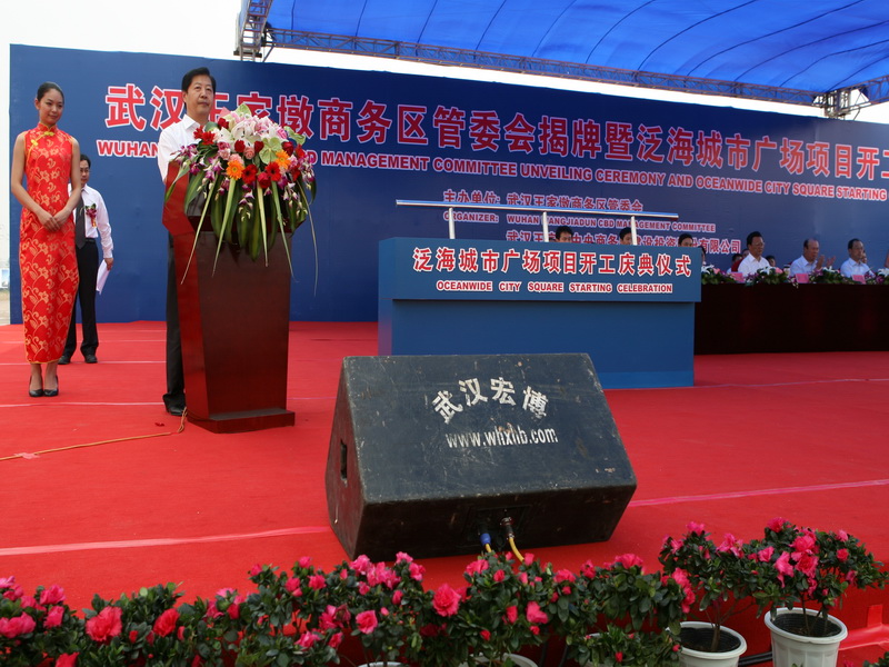 过去的8年,中国泛海集团坚持社会、企业、个人在目标、责任和利益上的高度统一,坚持“敬业、守信、忠诚、奉献、开拓、创新、立志、图强”的企业精神,坚定不移地扎根武汉投资武汉CBD项目。在省、市党委和政府及社会各界的关心、支持和指导下,目前CBD的市政基础设施建设已经全面铺开,各个开发项目正在加快推进陆续启动。今天,在各方的共同关心和努力下,CBD的首个大型公建项目——“泛海城市广场”,不负众望,如期开工了,我谨代表中国泛海集团董事长卢志强先生,对在百忙中抽出时间出席本次典礼的各级领导、各界朋友表示衷心的感谢和诚挚的欢迎!