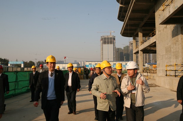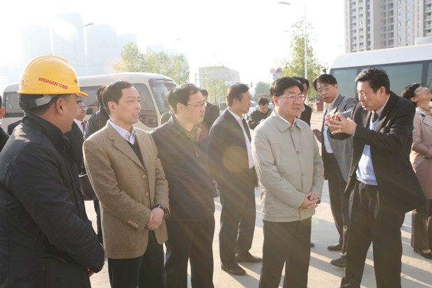 2012年11月6日,武汉市政协主席吴超一行莅临CBD调研考察,江汉区委书记李强等区领导、公司董事长陈贤胜等陪同考察。