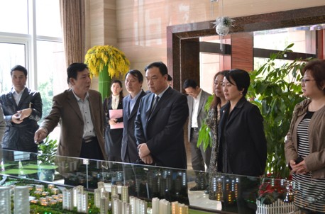 市商务局领导一行先后参观了泛海城市广场项目外立面、武汉CBD模型、观看了泛海城市广场购物中心宣传片。董事长陈贤胜向与会领导及专家汇报了武汉CBD的建设情况,商管公司副总经理吴汝勤详细介绍了武汉CBD商业的总体规划和商业项目的筹建情况。