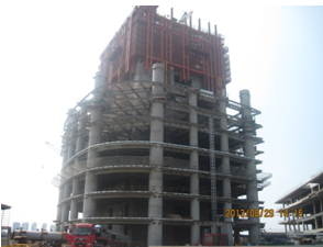 根据规划设计要求,武汉中心大厦核芯筒结构12层以下为单片钢板+钢筋混凝土剪力墙组合结构,每层有48块钢板焊接形成剪力墙,焊接缝长量大、工艺要求高,工序复杂,作业面窄,加之新采用的智能型施工平台顶升模架系统的前期磨合,建设进度平稳推进。进入12层以上的标准层施工阶段后,核心筒内剪力墙中的钢板墙改为钢骨柱,多道工序交叉同时施工,顶升模架系统运行正常,施工效率大幅提升,每层施工周期大幅缩短,施工进度实现6天一结构层快速生长。