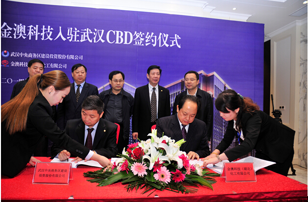 2014年10月28日上午,金澳科技(湖北)化工有限公司与武汉公司正式签订协议,整栋购买泛海国际SOHO城6号楼,正式入驻武汉中央商务区。这是继多家金融机构区域总部、国际五星级酒店之后,首家落户武汉中央商务区的大型企业总部。金澳科技的落户,标志着武汉中央商务区在企业总部引进、产业聚集、功能形成上又更进一步。