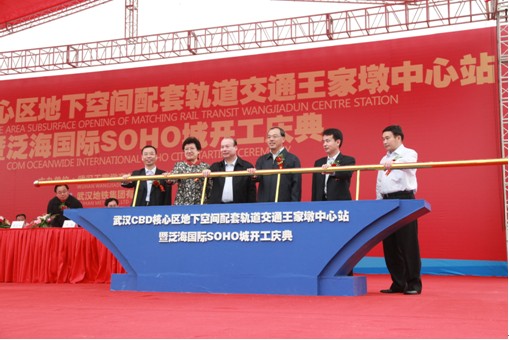 10月12日上午,武汉CBD两大重点项目——地铁王家墩中心站和泛海国际SOHO城开工典礼隆重举行。全国政协常委、全国工商联副主席、中国泛海集团董事长卢志强,武汉市市长阮成发,市人大常委会副主任吕金芝,副市长孙亚,市政府秘书长龙正才及市相关职能部门、王家墩地区驻军单位、江汉区、硚口区、商务区集团公司及相关单位近300位嘉宾出席了庆典仪式。开工庆典由江汉区委书记、王家墩商务区管委会主任张平主持。